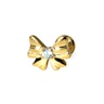 Este lindo labret contém um laço fofinho com uma delicada zircónia cúbica ao centro. O laço estende-se por 8 mm até ao ponto mais distante, enquanto a pedra tem 2 mm de diâmetro.