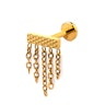 A parte retangular frontal deste labret tem cavidades que lhe dão um aspeto curioso e com textura. Presas ao retângulo estão cinco correntes de vários comprimentos, sendo que a mais comprida está no centro. Isto dá à joia uma aparência triangular.