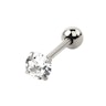Aqui pode ver um piercing na língua com uma bola achatada. Ocupa menos espaço do que uma esfera regular e, ao mesmo tempo, é inteiramente feita de pedra. Então, quando abre a boca, a grande pedra brilhante desperta rapidamente a atenção, ao contrário de bolas de metal com uma pequena pedra. Pode escolher a cor da pedra, enquanto escolhe a cor do próprio metal. Aqui apenas a versão brilhante está disponível com diferentes cores de pedra, portanto, se escolher, por exemplo, uma barra preto, terá uma pedra clara. A barra é feita de aço cirúrgico e tem dimensões padrão de piercing na língua; 16 mm. de comprimento e 1,6 mm. de espessura.