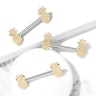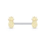 Esta barra de 14 mm de comprimento e 1,6 mm de espessura é feita de aço cirúrgico. Os desenhos são em forma de ananás e de bronze, tendo sido revestidas com implementação iónica para oferecer a opção em duas cores muito bonitas e brilhantes: dourado e prateado.