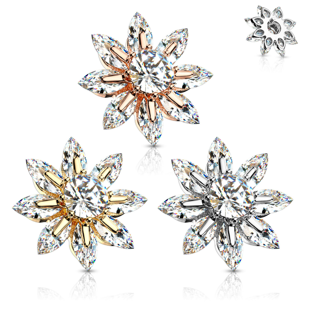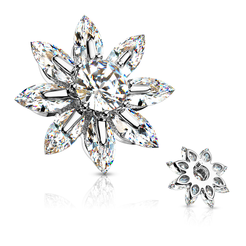 Nome: Microdermal floral com pétalas em pedra e gema central