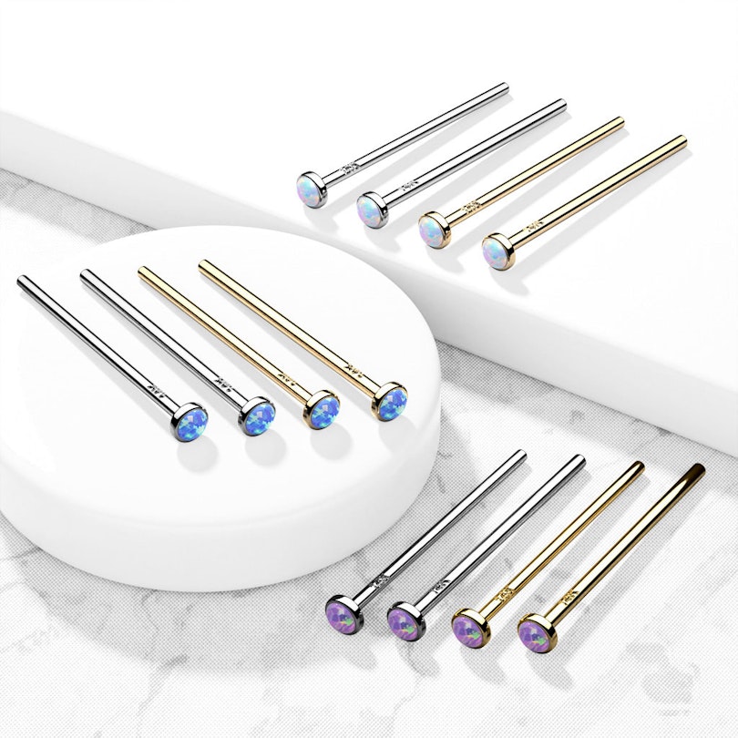 Nome: Nariz piercing em ouro 14 quilates com opala biselado