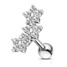 Esta joia de piercing é ideal para uso na helix, que também podes olhar para o modelo da imagem do produto acima. As três flores que estão na frente da barra dobram-se levemente para que sigam a borda da orelha. A parte frontal mede 12 mm de flor para flor e consiste em 3 pequenas flores floridas. As flores podem ser seleccionadas em três cores diferentes - é apenas a cor que é a diferença entre os três modelos. Tudo o resto é o mesmo.