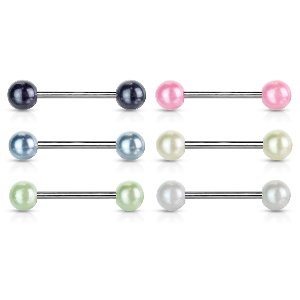 Aqui tem uma oportunidade irresistível: consiga estas impressionantes cores pastel para o seu piercing da língua. Aqui conseguirá nada menos que seis piercings da língua numa só compra, todas elas com delicadas bolas estilo pérola, tanto a bola superior como inferior.
