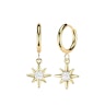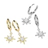 Este par de huggies com pendente de sol funciona como um comprimido de bom humor sempre que o utilizares. Cada argolinha é composta por um sol cheio de detalhes e com uma pedra no centro, que vai dar ao teu conjunto na orelha a quantidade certa de personalidade sem esforço.