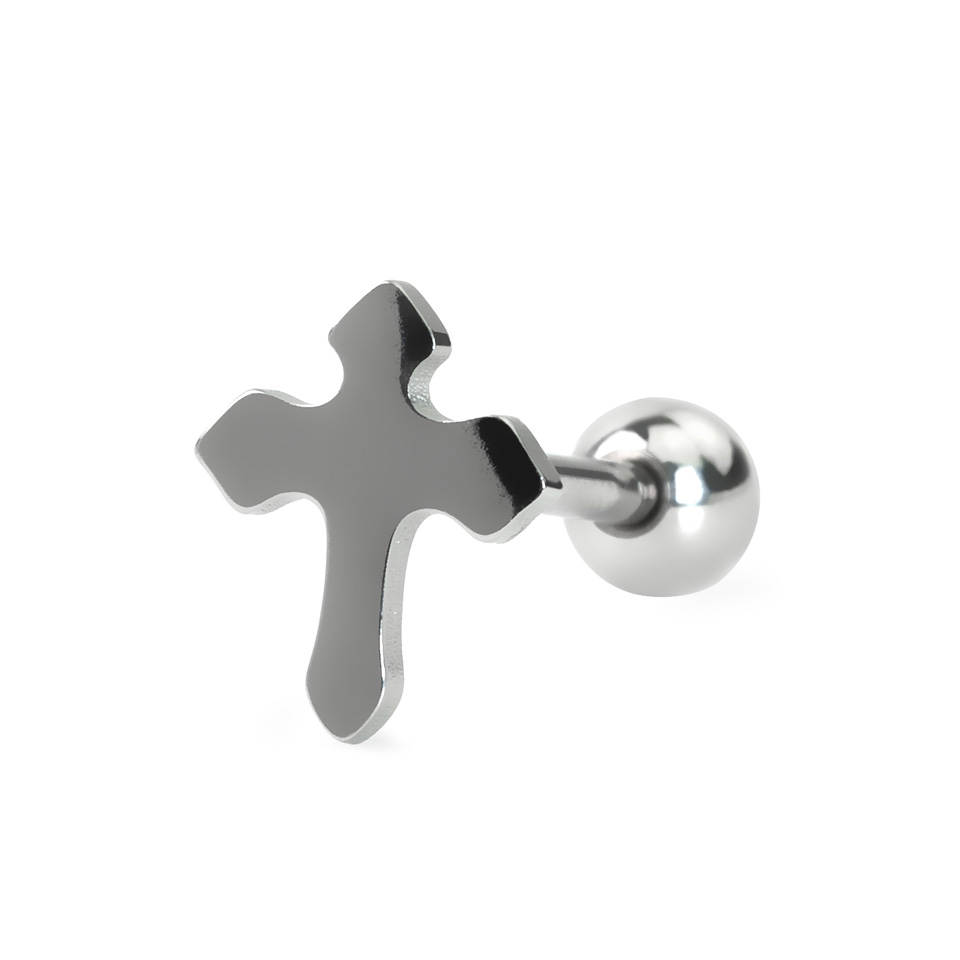 A bola superior desta joia tem uma forma de cruz, e não é possível desenroscá-la. Por outro lado, a sua bola inferior é amovível e de 5 mm.