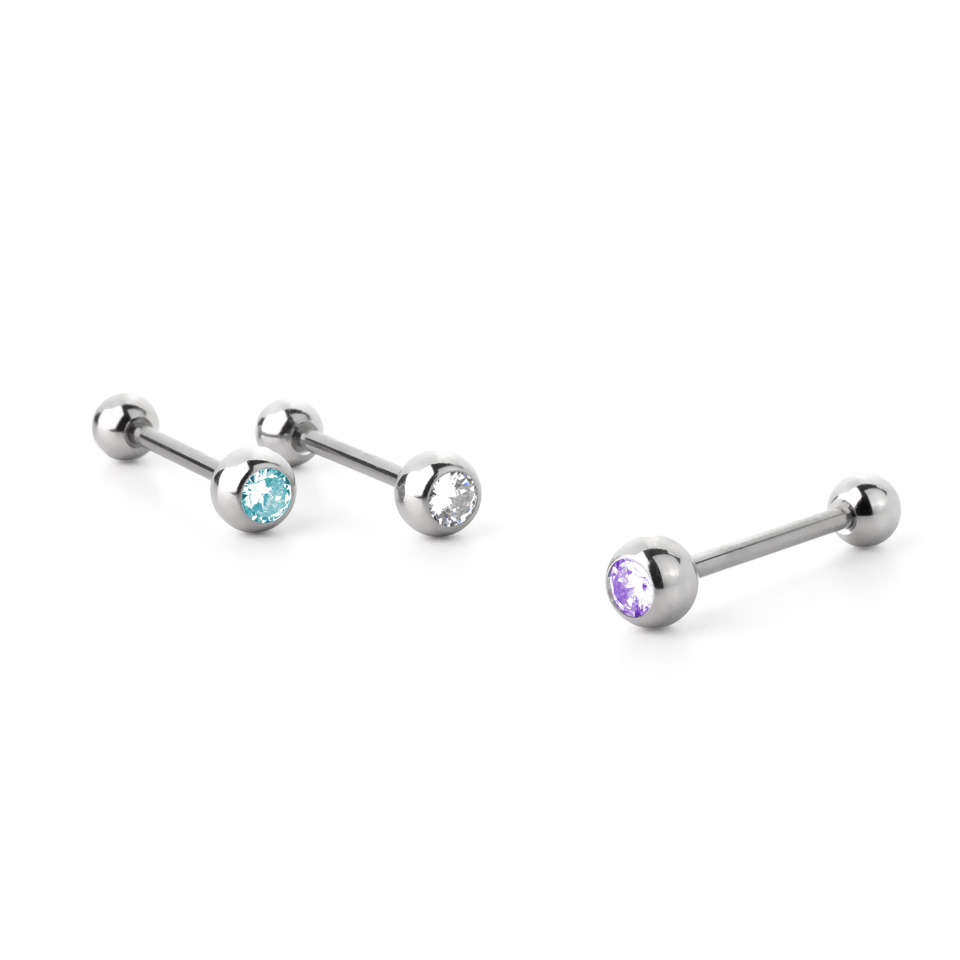 Consiga este bonito e clássico piercing de língua com um brilhante talhado em forma de diamante na parte superior. Esta joia está disponível em muitas cores distintas, pelo que agora poderá combinar a sua joia com as suas roupas, sem que o seu mealheiro sofre.