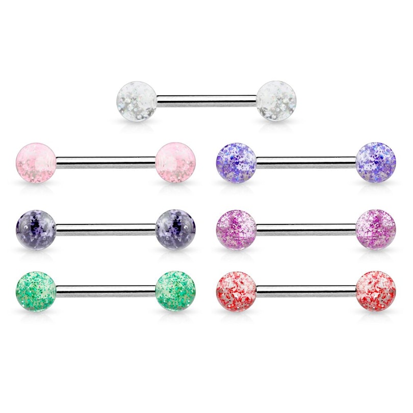 Com esta jóia para o piercing da língua estarás satisfeito por mais tempo, já que é feita dos melhores materiais. A barra é feita em titânio, um um material hipoalérgico, além de poderes usá-lo mesmo se a tua perfuração for recente. As bolas são feitas em acrílico, pelo que não danificará os teus dentes no caso de golpes (como poderia acontecer com bolas de metal). Escolhe a cor das bolas no quadrado superior, e enviaremos a tua nova jóia prontamente.