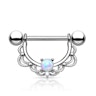 Esta é a sua oportunidade de mimar os seus mamilos com esta bonita joia, que não poupa nos bonitos detalhes. A joia está decorada com uma bonita e elegante filigrana, que fica pendurada como uma corrente e é simétrica, além de ter uma bonita opala no centro. A filigrana tem os cantos redondos, e junto com a opala redonda, libertam uma sensação de harmonia.