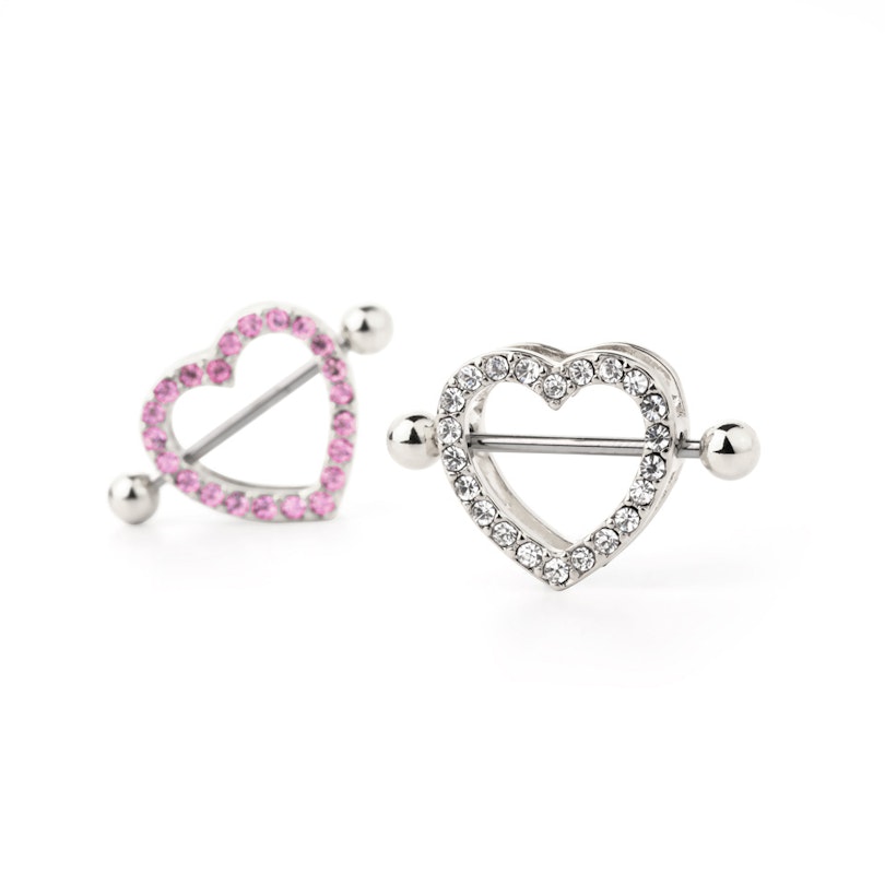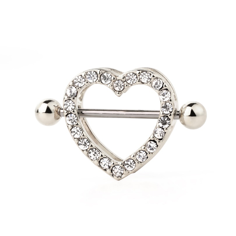 Mamilo piercing em formato de coração com pedras brilhantes