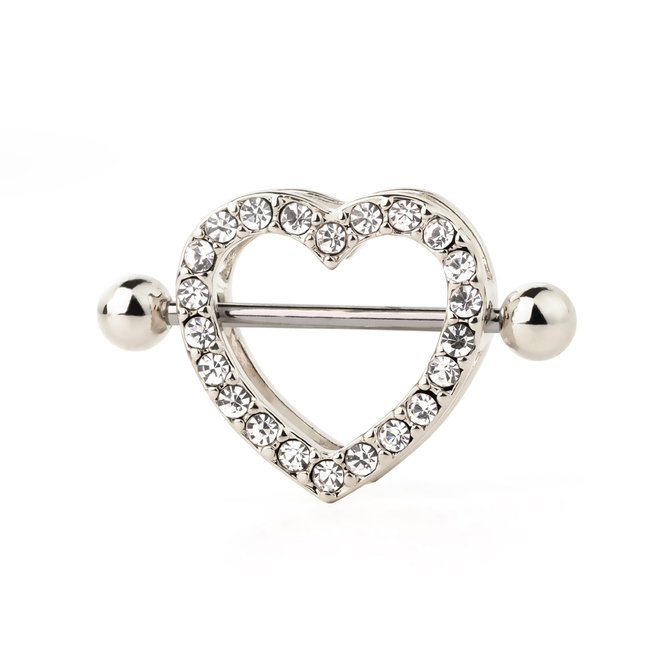 Nome: Mamilo piercing em formato de coração com pedras brilhantes