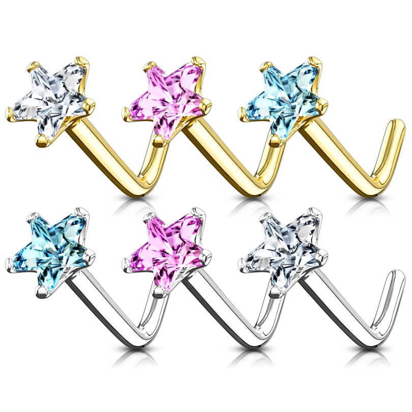 Brilhe como as estrelas com esta bonita e feminina joia para o nariz, e o seu precioso brilhante em forma de estrela. O brilhante foi talhado por múltiplos lados, pelo que quando a luz se reflete nele, faz com que brilhe enormemente. De facto, o brilhante tem a mesma forma que os diamantes do mundo da joelharia. Além de puder escolher entre três cores distintas: a cor clara é fenomenal se procura um estilo clássico, o rosa acentuará o aspecto feminino da joia, e a turquesa dará ao seu estilo um ar fresco e muito especial.