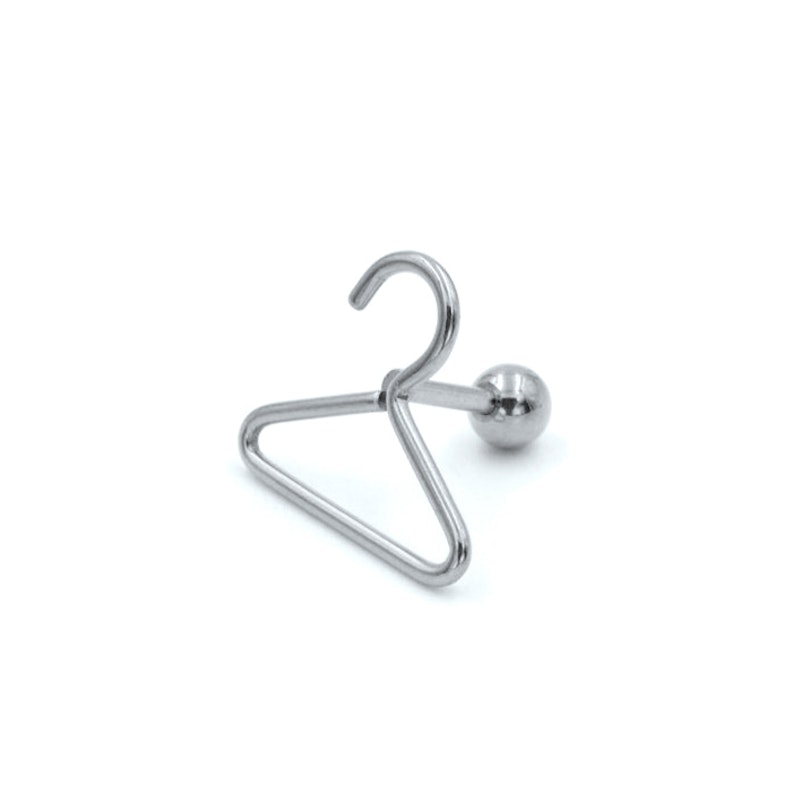 Talvez não tenha pensado nesta possibilidade, mas agora tem a oportunidade de conseguir uma pequena e bonita joia para a sua orelha, que mostra o seu passatempo de roupas e complementos. Esta joia é feita de uma peça de metal, à qual foi dada a forma de um cabide de roupa, e mede 15 mm de largura e 13 mm de comprimento.