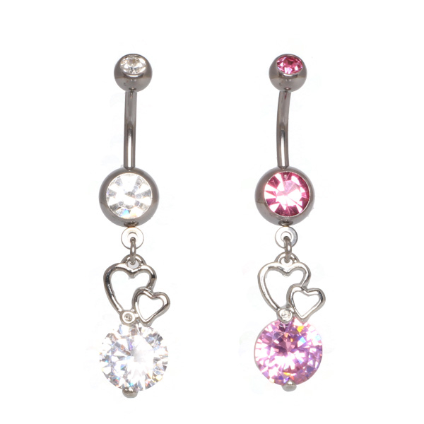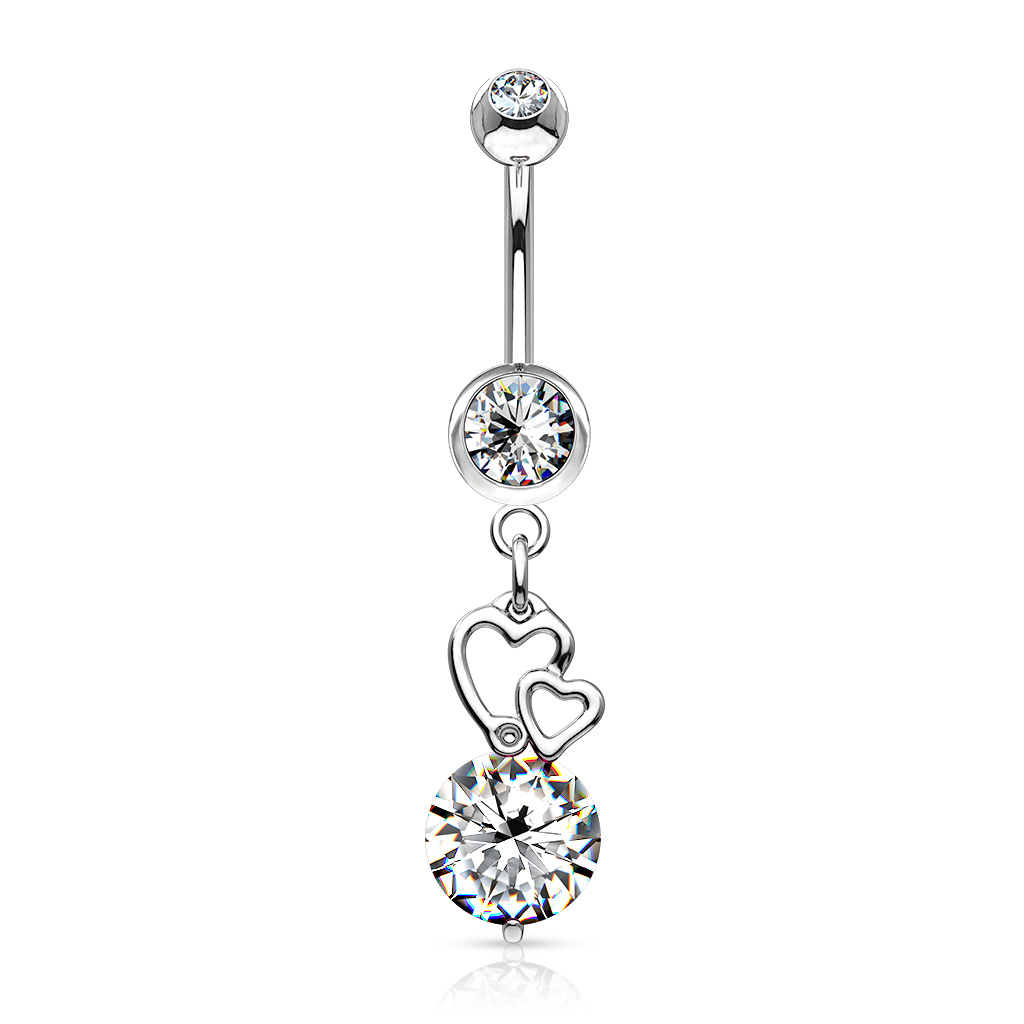 Nome: Umbigo piercing com corações e um cristal grande