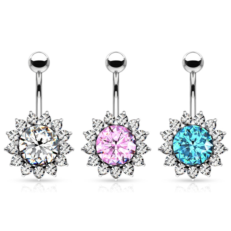 Umbigo piercing com girassol e brilhantes