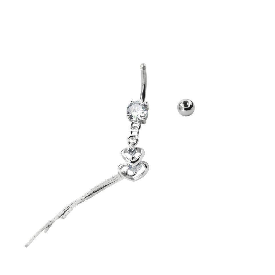 Esta é uma joia para o piercing do umbigo com pequenos brilhantes e dois doces corações num pendente.
