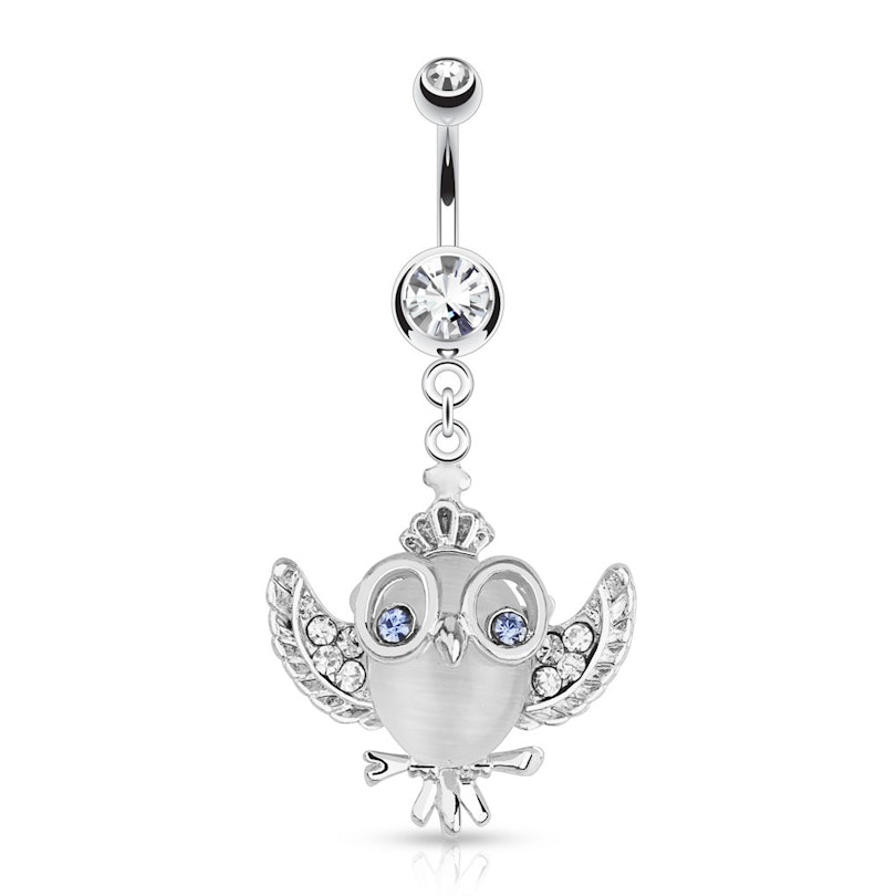 Não encontrará nada mais doce e delicado que esta bonita joia para o piercing do umbigo, com um grandioso mocho como pendente. Esta joia é feita em aço cirúrgico e tem uma barra de 10 mm, cujas bolas superior e inferior estão decoradas com bonitos brilhantes da cor que escolher.