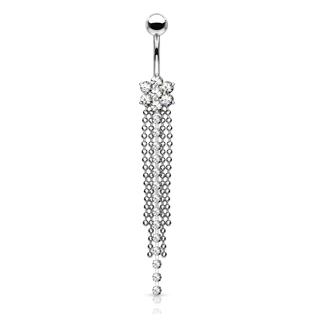 Nome: Umbigo piercing com uma flor e um pendente de corrente