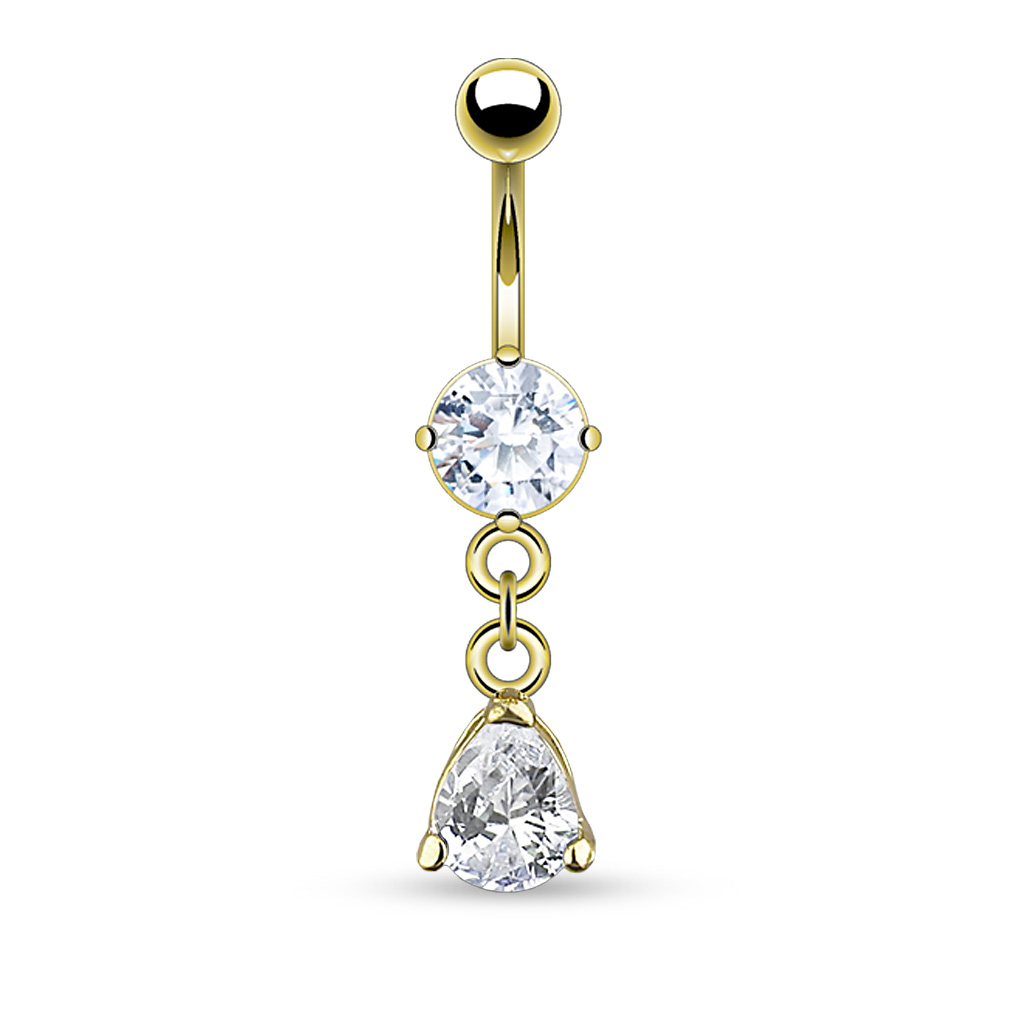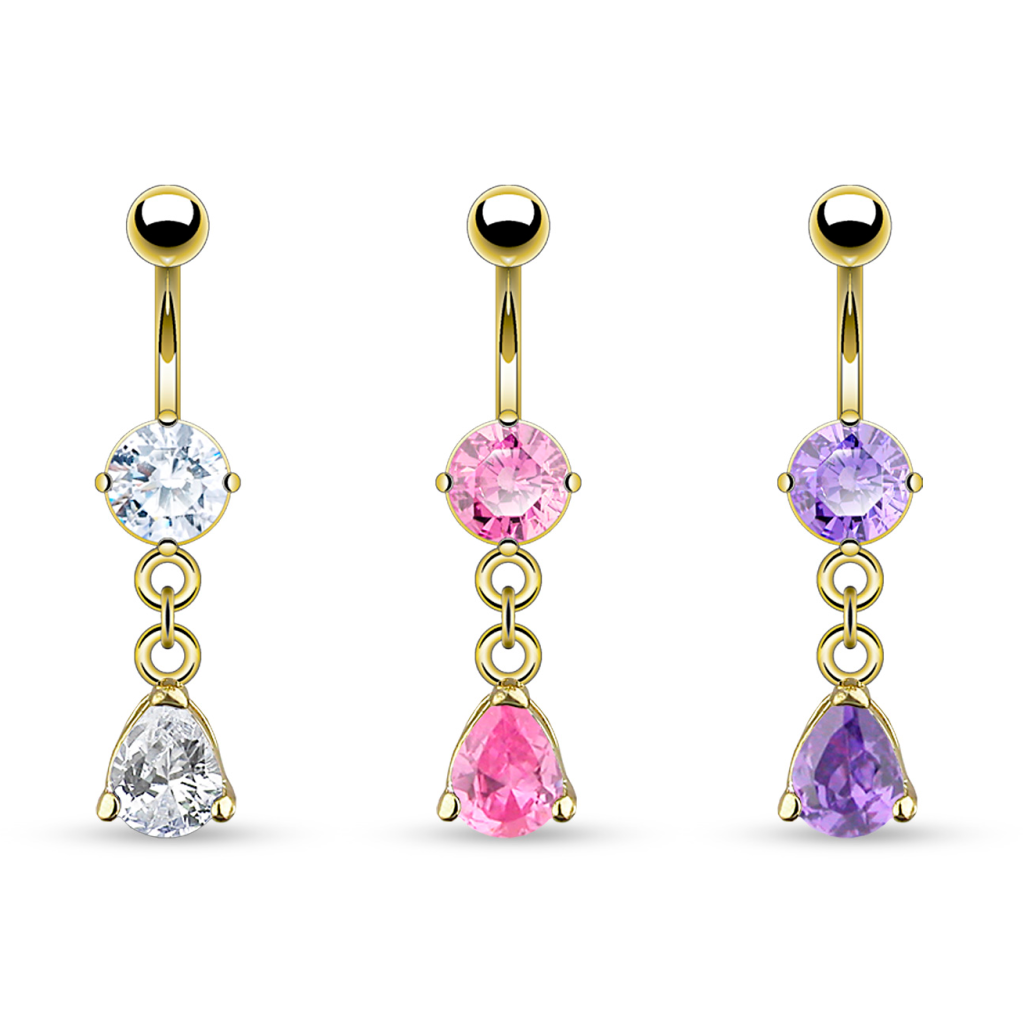 Nome: Umbigo piercing com uma pedra e um pendente de gota