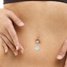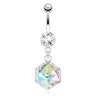 Umbigo piercing com uma pedra em formato de cubo