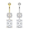 Esta preciosa e elegante joia para o piercing do umbigo é feita em ouro de 14 quilates, e podemos dizer que pertence ao mundo das princesas. Está decorada com um brilhante grande em forma quadrada no pedente, com talhado Asscher. Este talhado tem cerca de 100 anos de antiguidade, e foi criado quando os irmãos Asscher receberão a tarefa da família real Holandesa de talhar o maior diamante do mundo. Este talhado tem a particularidade de que consiste em cortar o diamante de forma rectangular e adicionar várias camadas nos cantos, de modo que o brilho tenha um excelente efeito e possa brilhar ao máximo.