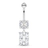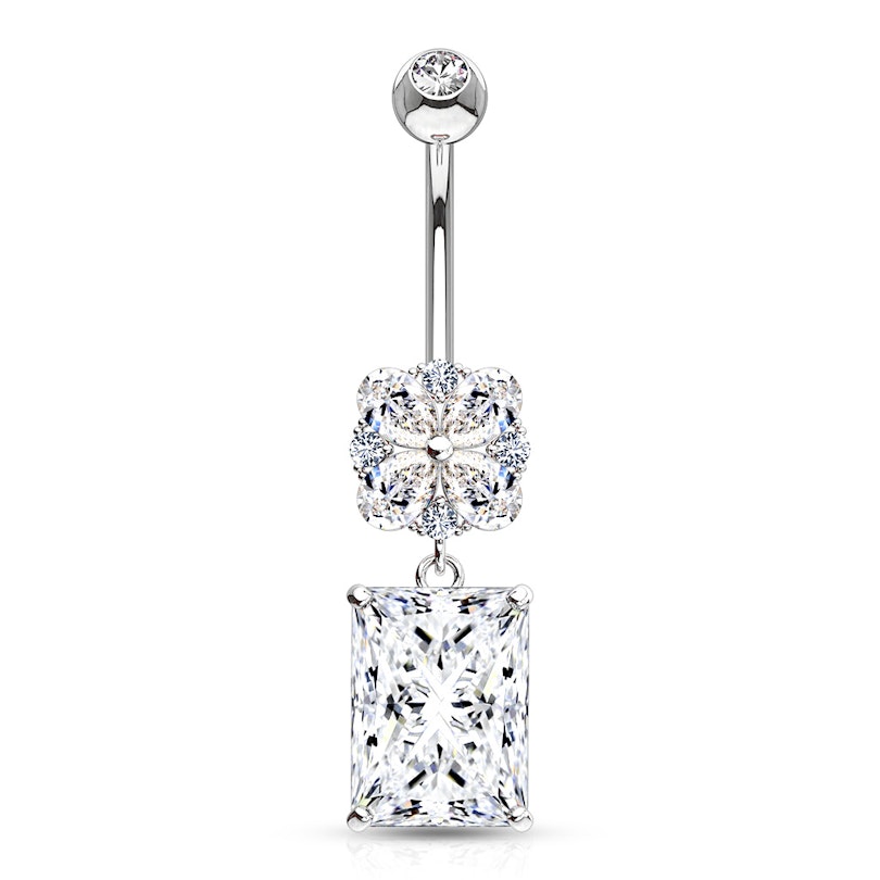 Umbigo piercing de ouro 14 quilates com uma flor e uma pedra quadrada