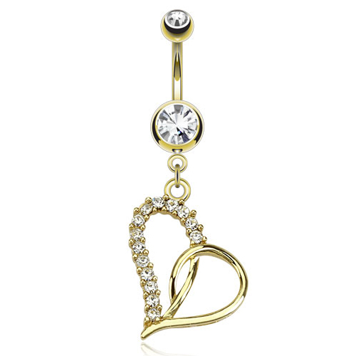 Nome: Umbigo piercing banhado a ouro com um coração e pedras claras