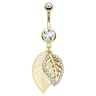 Umbigo piercing banhado a ouro com um pendente de folhas