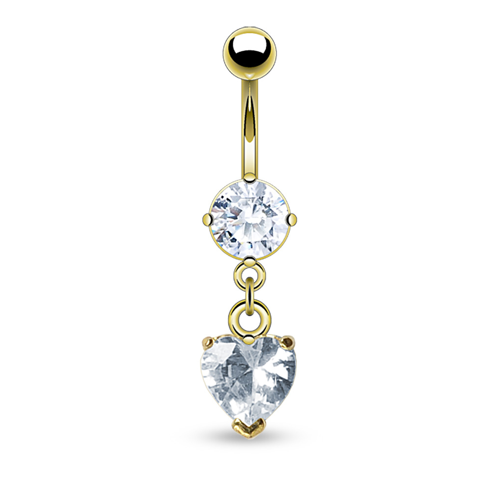 Umbigo piercing banhado a ouro com pedra e pendente em formato de coração