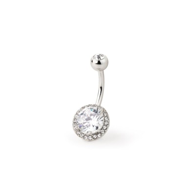 O piercing de umbigo que vê na foto acima representa um pavão. O pavão tem a sua cauda de brilhantes completamente aberta como a ave geralmente faz para parte de uma seleção sexual, onde os machos intimidam uns aos outros. Normalmente, um macho tem entre 100 e 150 penas na cauda, mas para um piercing sete penas de brilhante é o suficiente.