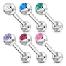 Este piercing para a língua é com os que já conhece, excepto a parte em que a sua bola superior é especialmente grande e bonita, decorada com uma opala sintética. Esta opala ficar bem presa à bola por meio de uma borda, desta forma não poderá cair da bola.