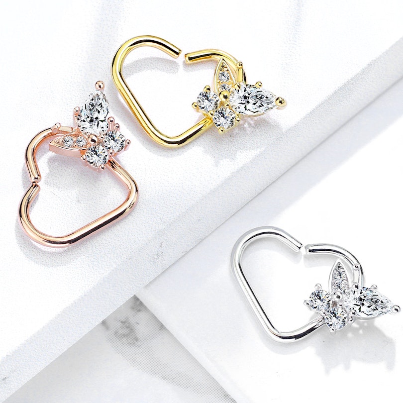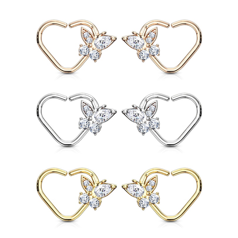 Finalmente encontrei uma joia de piercing com uma borboleta. Tamanho perfeito do coração e da borboleta. É tão incrivelmente bonito. Exatamente o que eu queria.