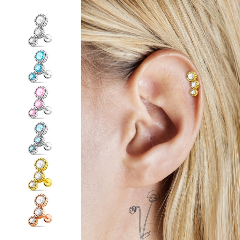 Piercing para helix com 3 pedras redondas em vários tamanhos