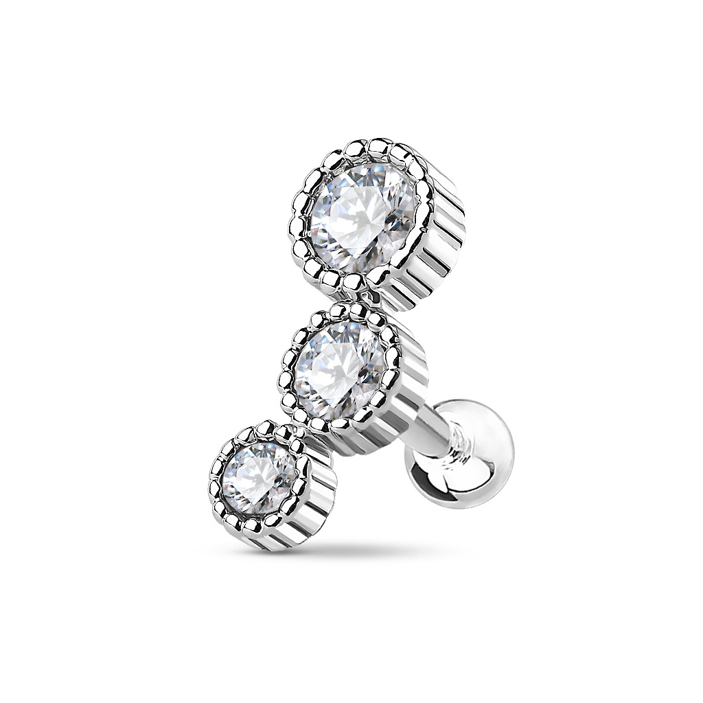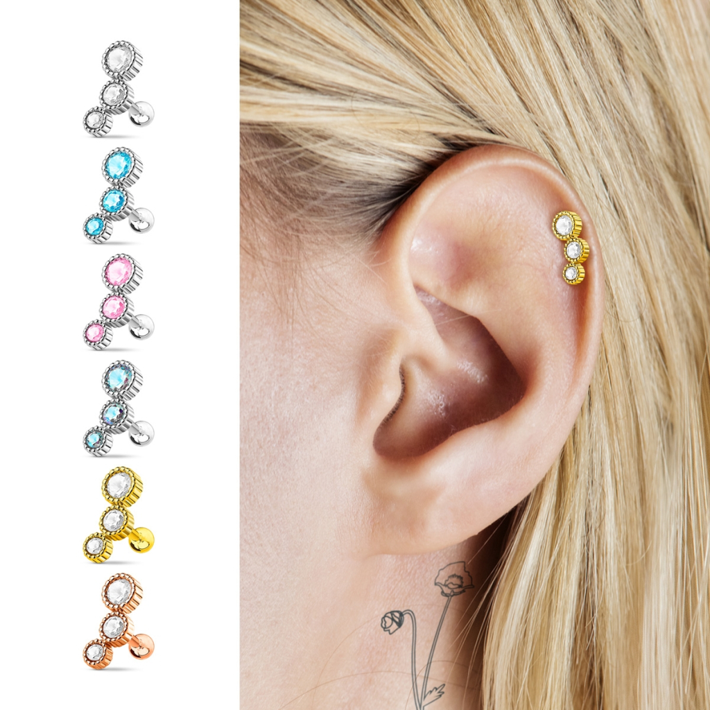 Piercing para helix com 3 pedras redondas em vários tamanhos