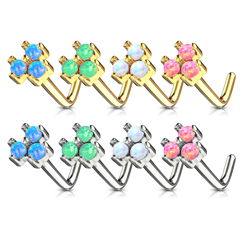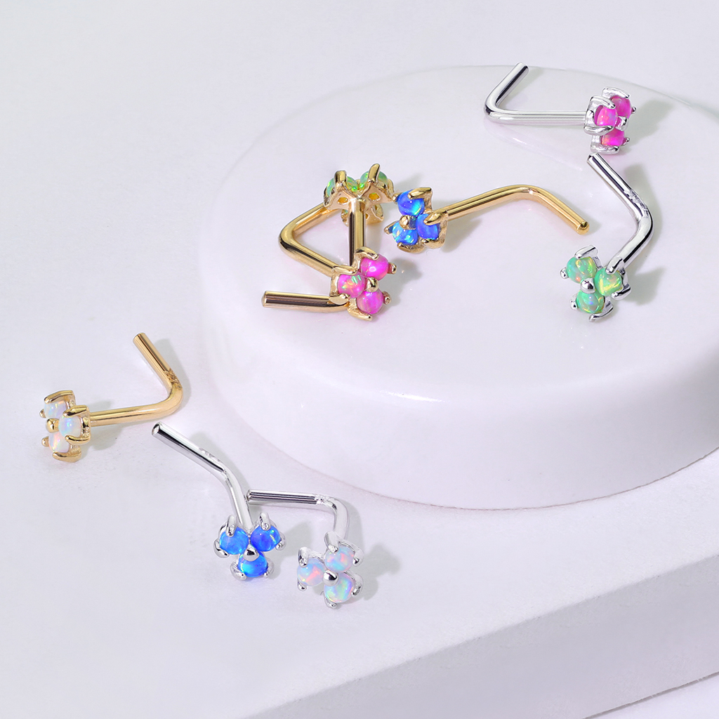 Nome: Nariz piercing em ouro de 14 quilates com 3 opalas