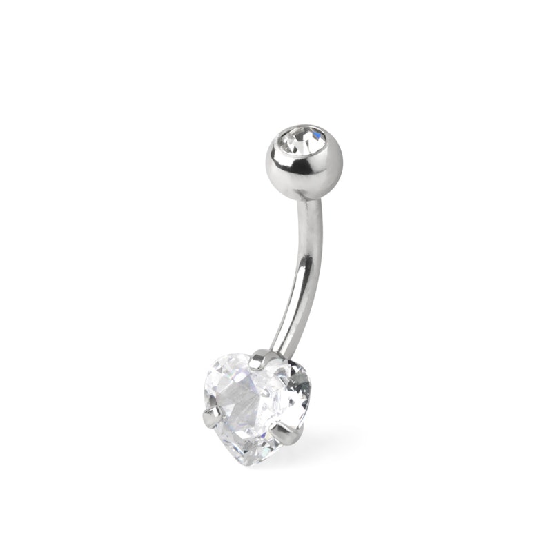 Elegante doce e feminino. Estas são as palavras que melhor definem esta joia para o piercing do umbigo com um brilhante em forma de coração.