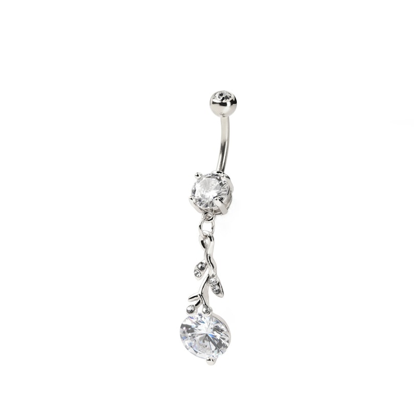 Umbigo piercing com pendente de rama de folhas e brilhantes