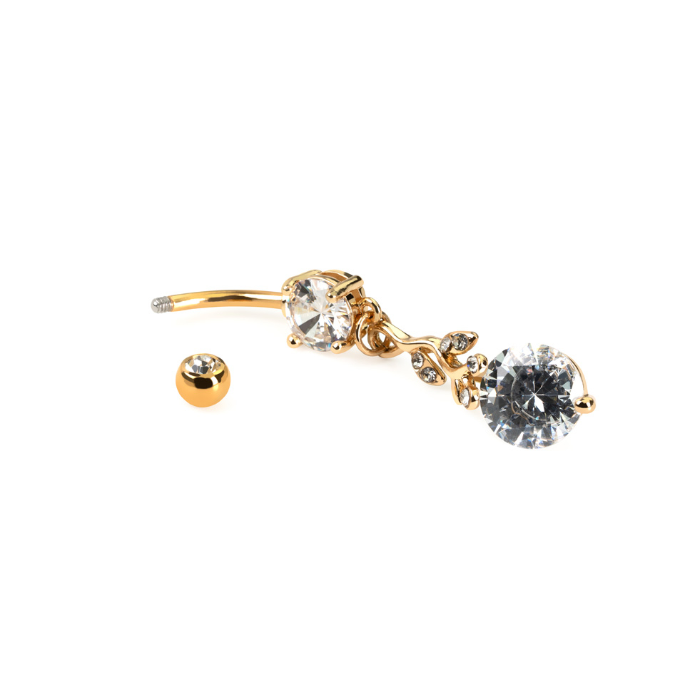 Umbigo piercing com pendente de rama de folhas e brilhantes