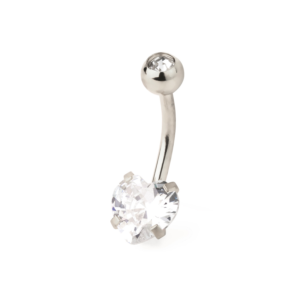 O coração é um desenho muito popular dentro dos piercings, além de muito feminino e que funciona excepcionalmente para as perfurações do umbigo. Desta vez, o coração tomou a sua forma sobre uma pedra talhada, que pode ver na imagem um pouco mais acima nesta página.