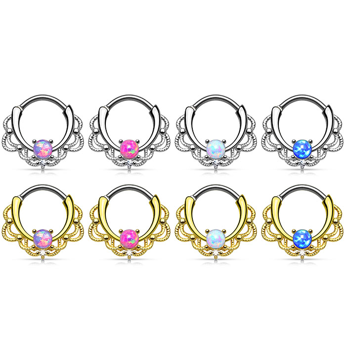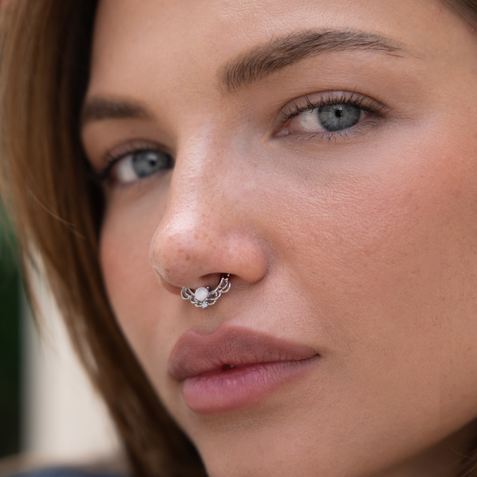 Nome: Septo piercing com pedra opala e desenho de corrente