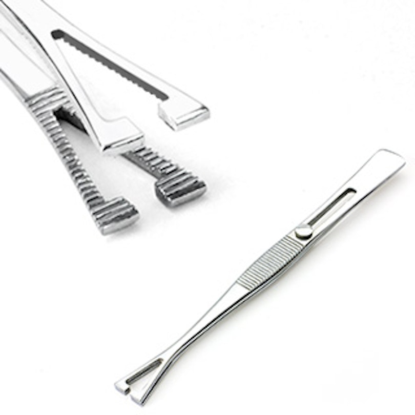 Esta é uma ferramenta essencial para perfuradores profissionais, graças à sua cabeça com fenda para inserir a agulha.