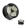 A joia tem forma delgada no centro e bordas mais elevadas, ajudando com que o plug assente firmemente uma vez colocado na sua orelha.