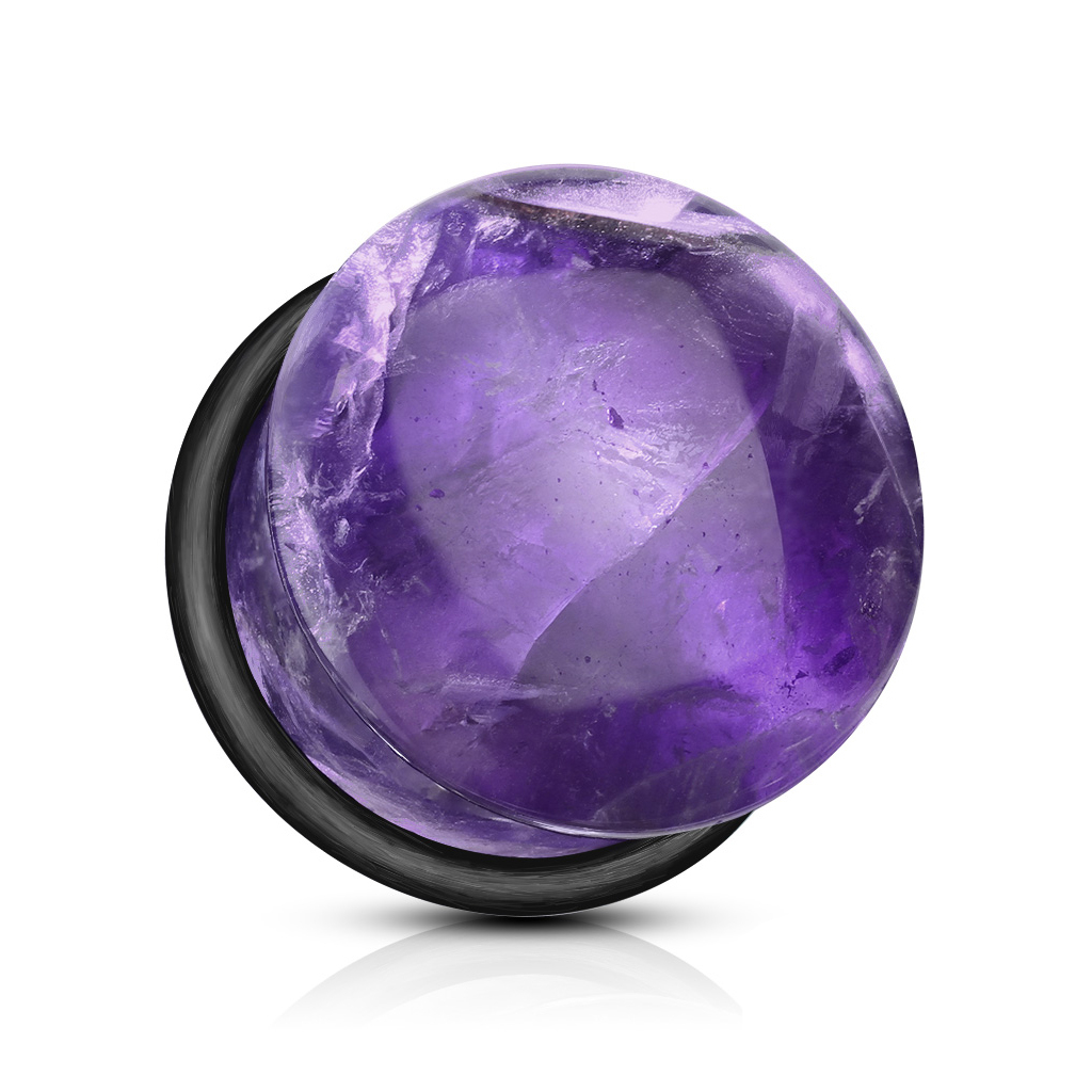 O plug que vê na figura acima é feito de um material orgânico - mais especificamente, quartzo. O nome da pedra é ametista e é incrivelmente bonito na sua aparência variável. A cor é básica, mas os tons variam de violeta muito claro a escuro. Sob a luz certa, pode até ser possível que haja áreas transparentes e claras. Como também pode ver na imagem do produto, as veias passam pelas jóias. Não é algo que pode ser sentido à medida que são polidas completamente lisas - mas em caso de solavancos ou pancadas, estas podem ser vulneráveis exatamente nas veias, por isso é importante não o jogar ao chão. O plug está disponível em vários tamanhos diferentes. Quanto maior o diâmetro, mais emocionantes este plug é. Todos os plugs estão equipados com um o-ring na parte traseira.