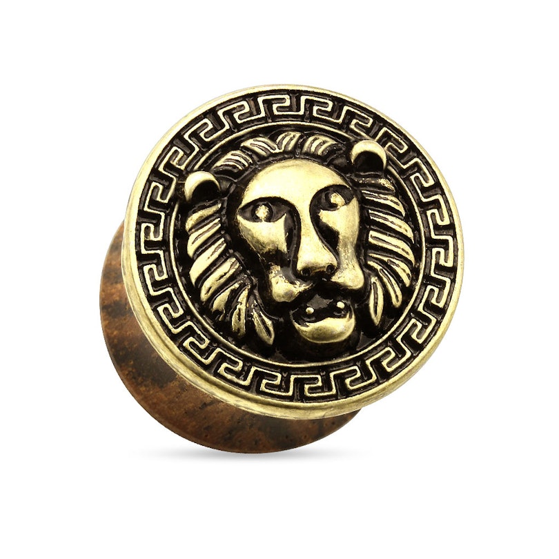 Plug de madeira com cabeça de leão