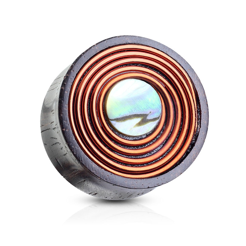 Nome: Plug de madeira com madrepérola e com arame de cobre
