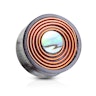 A frente da joia tem um pequeno disco de nacar no centro, este está rodeado de arame de cobre. Pode parecer um pouco estranho se nunca antes viu noutras joias, mas na realidade é muito bom para um plug.