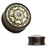 O bonito desenho na parte da frente da joia tem uma camada dourada que contrasta fabulosamente com a cor da madeira. Este plug está disponível até 25 mm de diâmetro, pelo que inclusive as dilatações de maior diâmetro o podem levar.