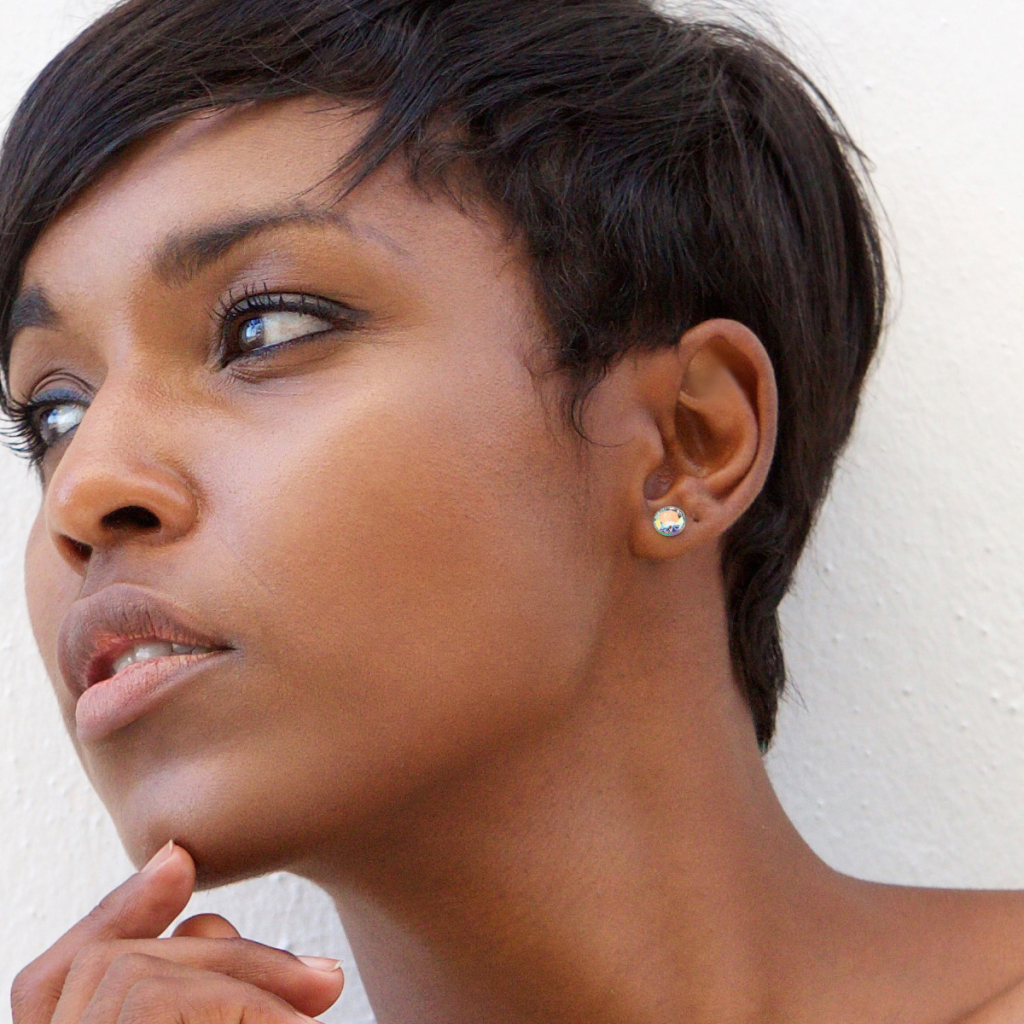 Além de escolher a cor do material, tem também a oportunidade de escolher a cor do bonito brilhante da parte frontal desta joia. Tanto o modelo preto como modelo multicor estão disponíveis com um brilhante branco ou aurora boreal. Os brilhantes aurora boreal têm a característica de à simples vista podem parecer brilhantes brancos, mas apenas a luz ao se refletir irá mostrar todas as cores do arco-íris.