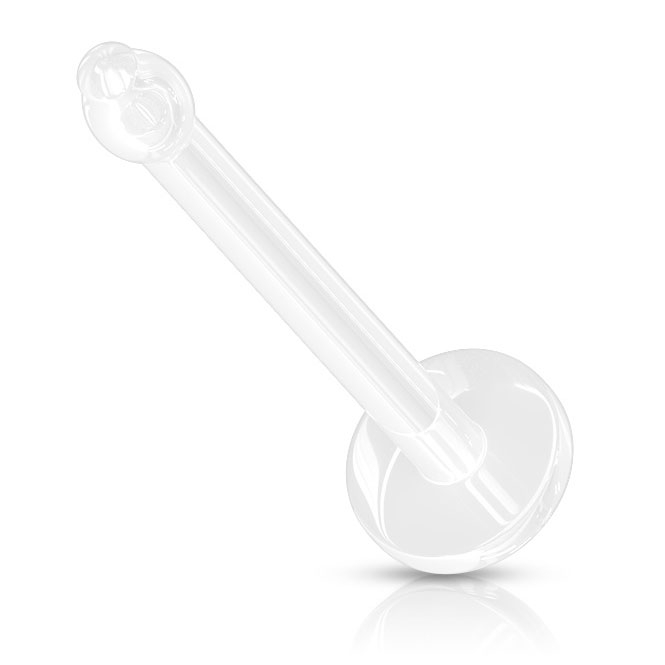 Este retainer para perfuração do nariz é feito de plástico transparente ou Bioflex, e consiste numa única barra com um calibre de 0,8 mm (20) e um comprimento de cerca de 7 mm (1/4 "). Tem uma pequena bola em uma das bordas , um pouco mais grosso que a barra. Isto funciona como um stop, para que não saia do nariz se usado normalmente. Na outra borda, tem uma placa com diâmetro de 2 mm (1/16 "), que deve ser colocado dentro do nariz.