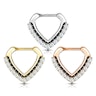 Nome: Septo piercing com forma de V cravejada de pedra macia